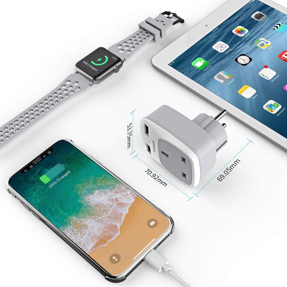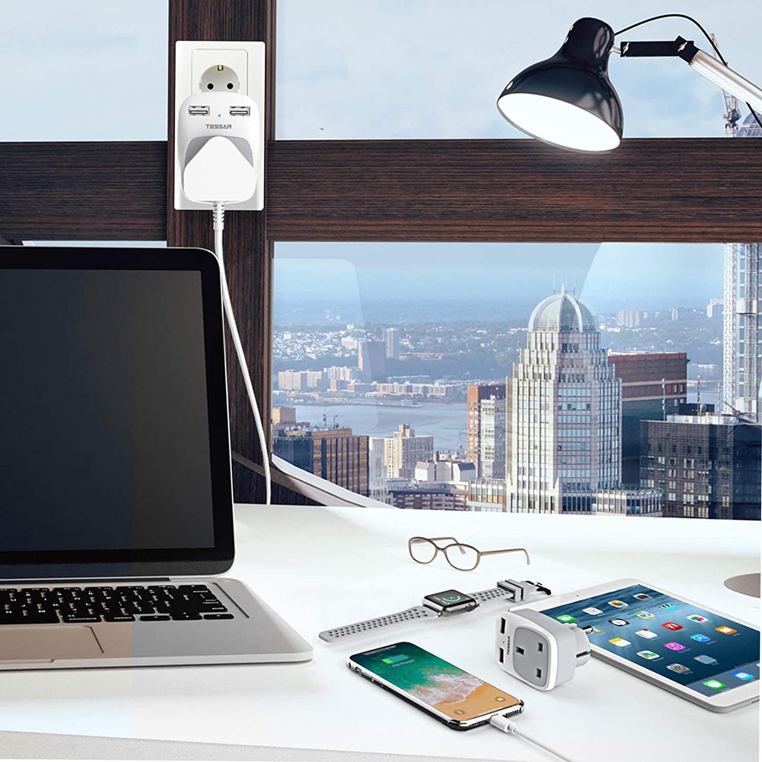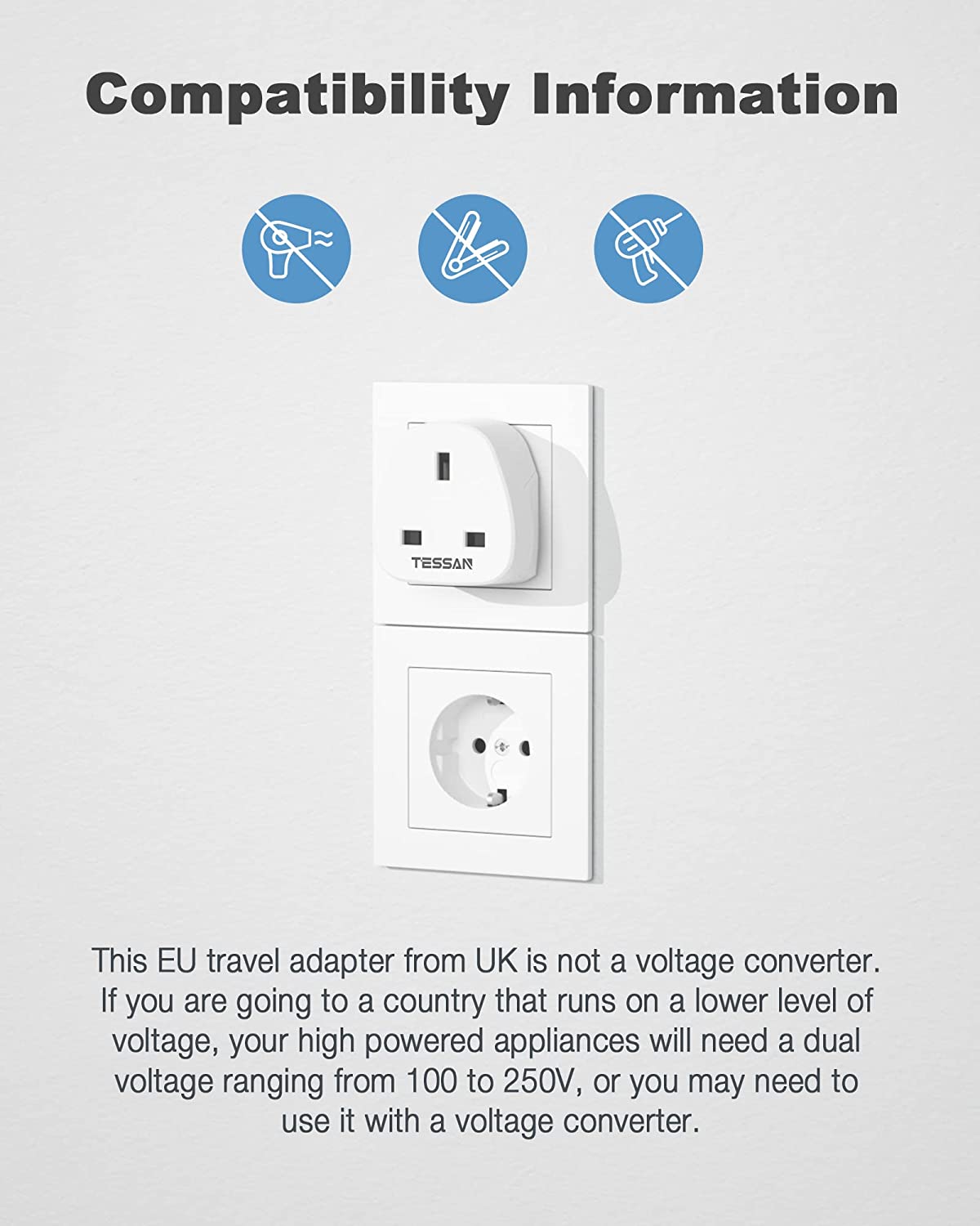 UK to European Plug Adapter: TSEEAN European plug adapter can extend a standard UK type G plug to EU type E/F outlet, idealing for charging electrical products such as mobile phone, tablet, camera etc when you are traveling in Europe