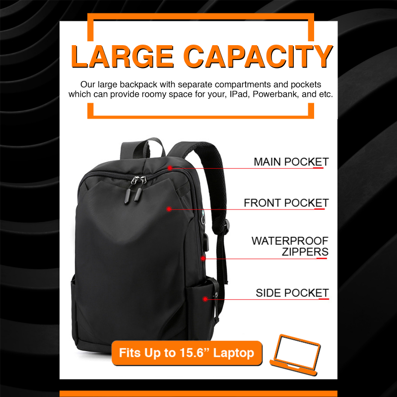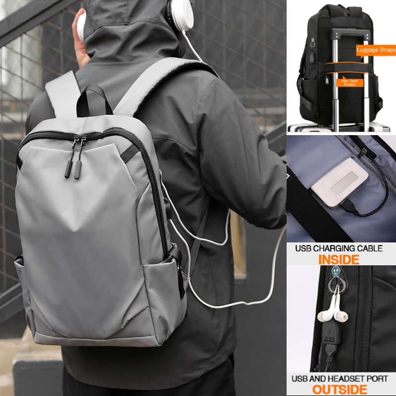 ✅ [SG] Men Laptop backpack/ Waterproof backpack School Bag/ Business Travel Leisure Bag with USB charging Port