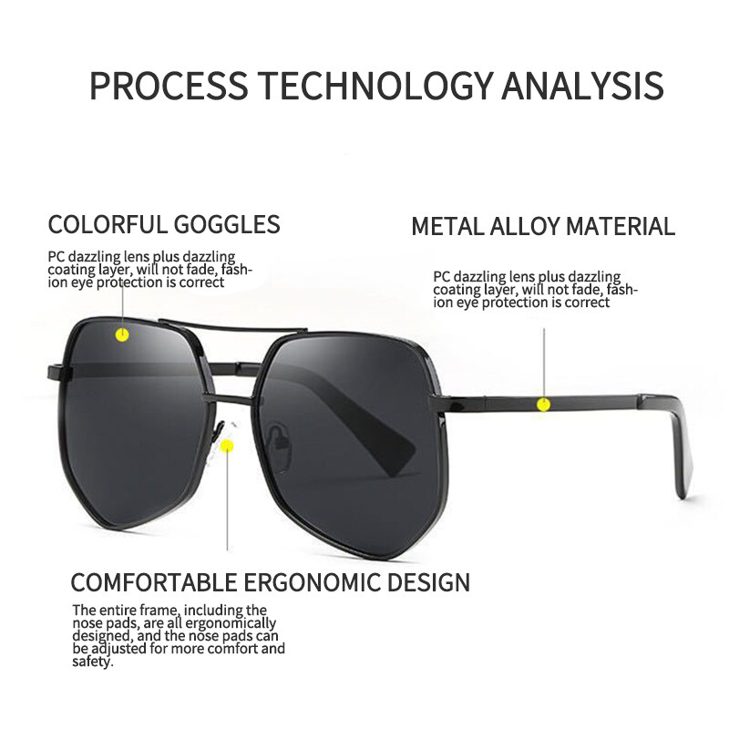 【Specification】 Product Name: Sunglasses Gender: Unisex Brand: PTQ Glasses style: polygon Glasses structure: full frame Lens material: AC Frame material: metal Whether polarized: no Anti-UV grade: UV400 Visible light transmittance: 99% Glasses color: Blue,Grey,White,Pink Glasses weight: 40g Suitable for face shape: various face shapes Applicable scene: sun protection, fashion wear, driving Style: simple, fashion, personality 【Order contains items】 1× glasses