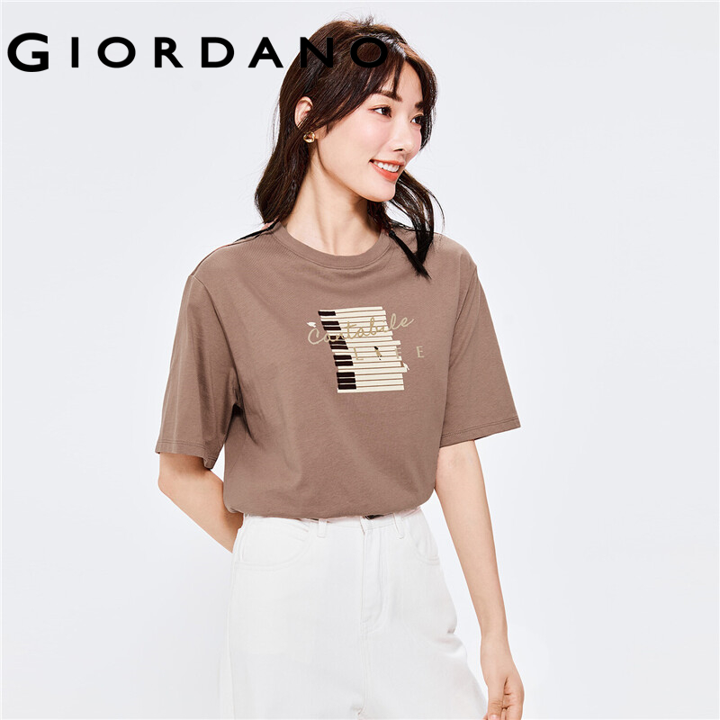 GIORDANO Women T-Shirts Music Print Graphic 100% Cotton Casual T-Shirts Short Sleeve Crewneck Summer Relaxed Simple Tee 05392322
