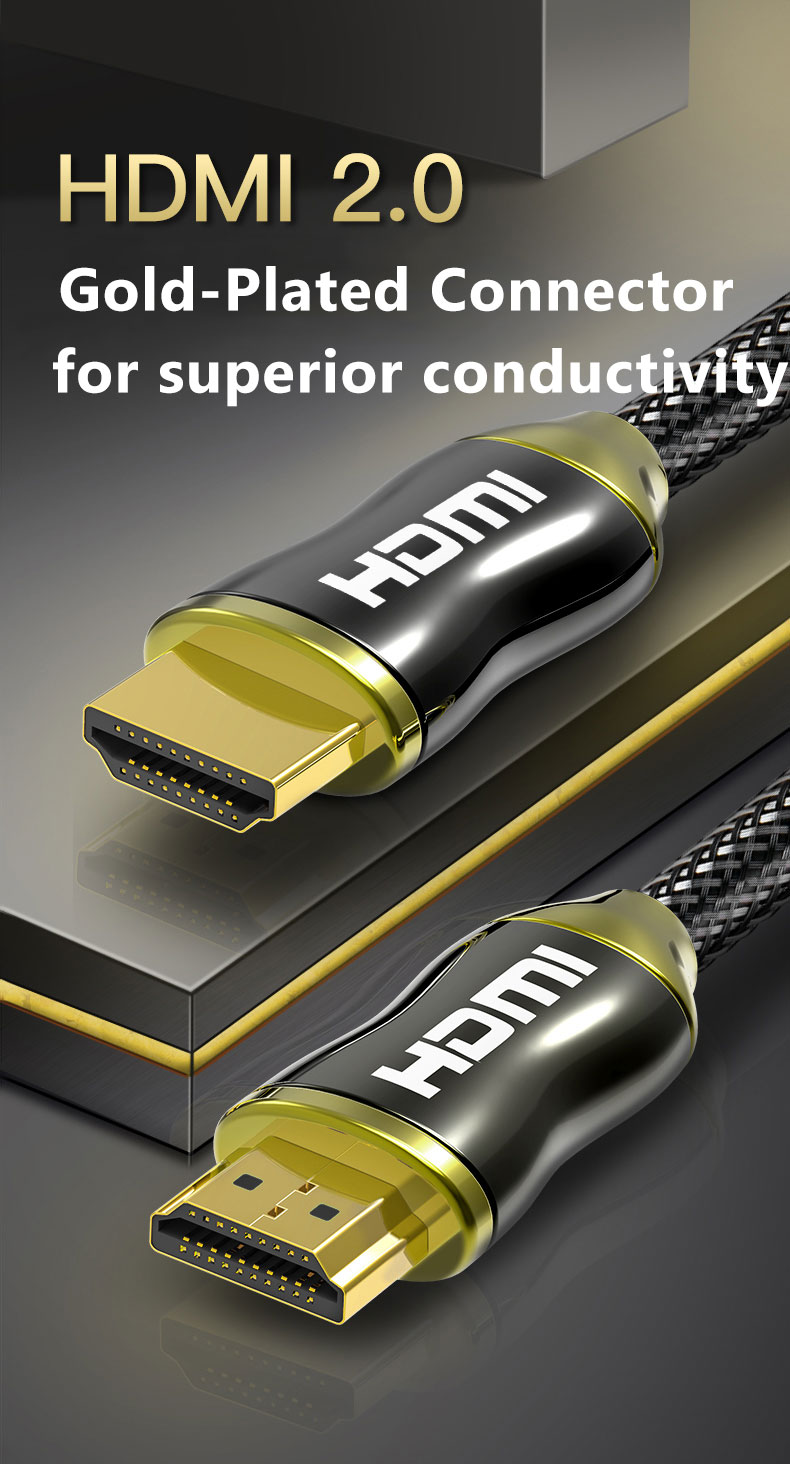 4K 60Hz HDMI Cable v2.0 High Speed High Performance Nylon Braided Supports HDMI ARC 4K Ethernet UHD Full HD 1080p 3D Smart TV Gaming Monitor Console - 2M Length