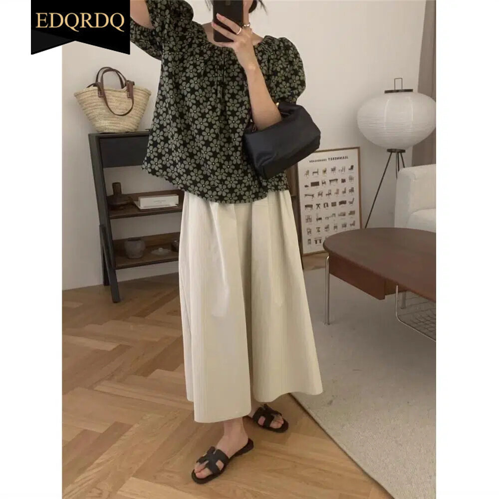 EDQRDQ Womens Oversized Floral Blouse Off Shoulder Puff Sleeves Chiffon Flowy Tops
