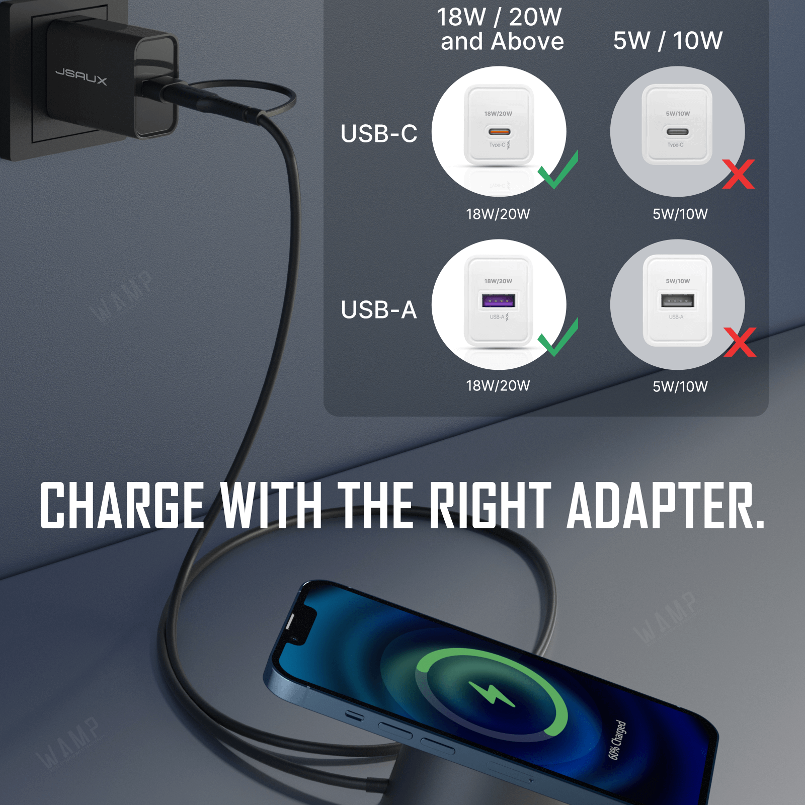 Fiddling with your phone's charging cable can be irritating at times. JSAUX 15W Magnetic Wireless Charger uses a strong magnetic array to ensure your iPhone 14/13/12 is in the perfect position for charging and provide convenient charging for situations when you don’t need a super-fast recharge.