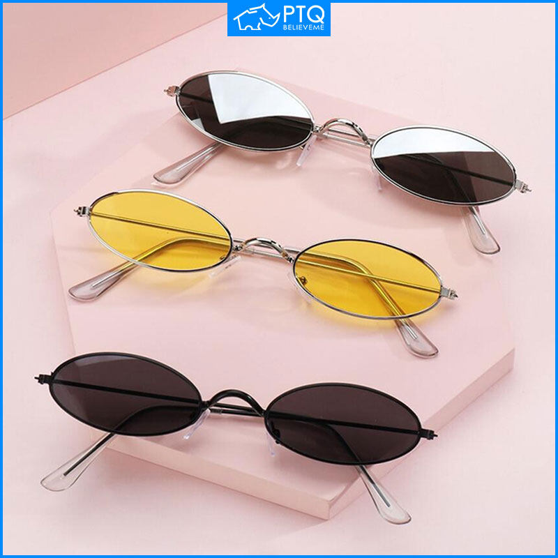 PTQSmall Oval Sunglasses Men Women Retro Eyewear Vintage Shades Fashion Design Sun Glasses for Women Men Anti-blue Light Eyeglasses PTQ