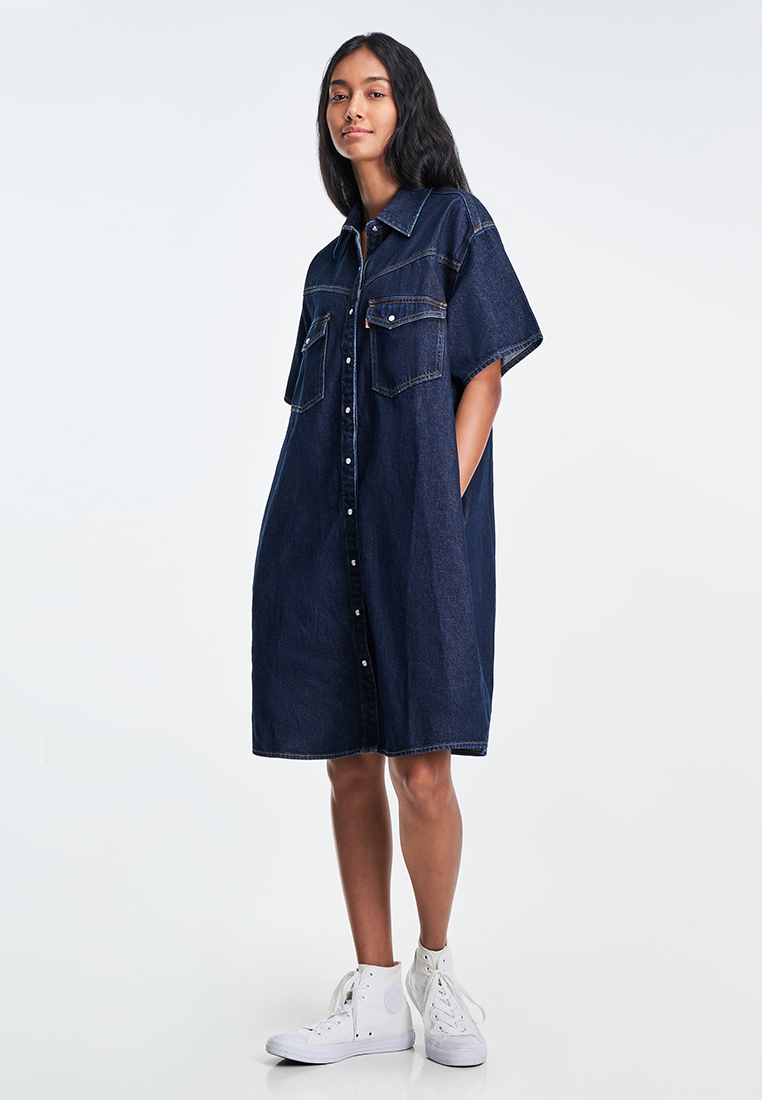 Online Exclusive Women's Embroidered F-box Logo Back Slit Dress