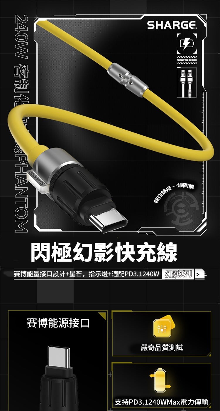 Shargeek/Sharge SL106 240W PD USB-C to USB-C Phantom Fast Charging Cable w/ E-Marker Chip w/ LED Light 1.2m for Samsung Android Power Bank