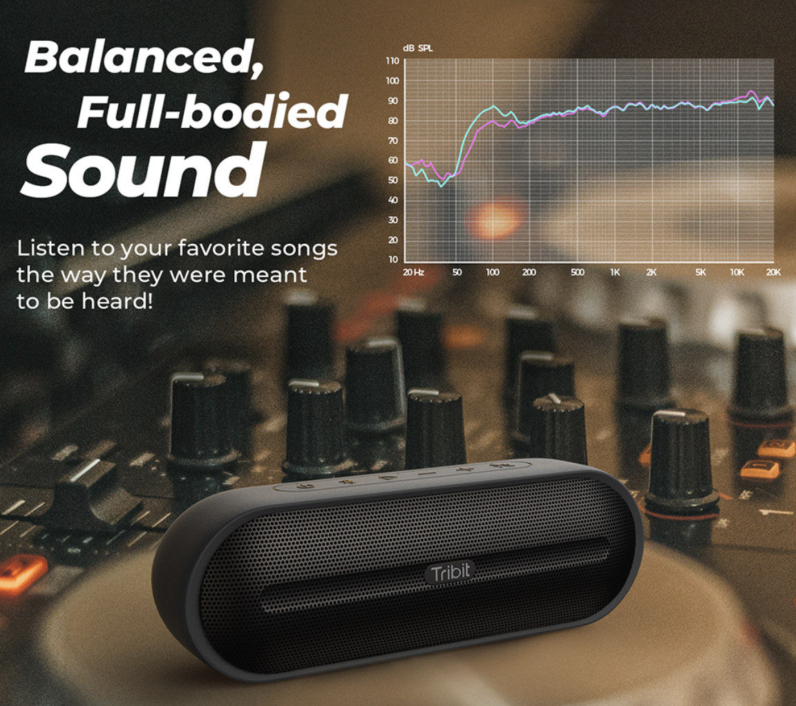 Tribit MaxSound Plus wireless speaker delivers a strong bass sound, IPX7 waterproof makes it durable in outdoor use.The well-designed mini Bluetooth speaker is worthy of its price class.