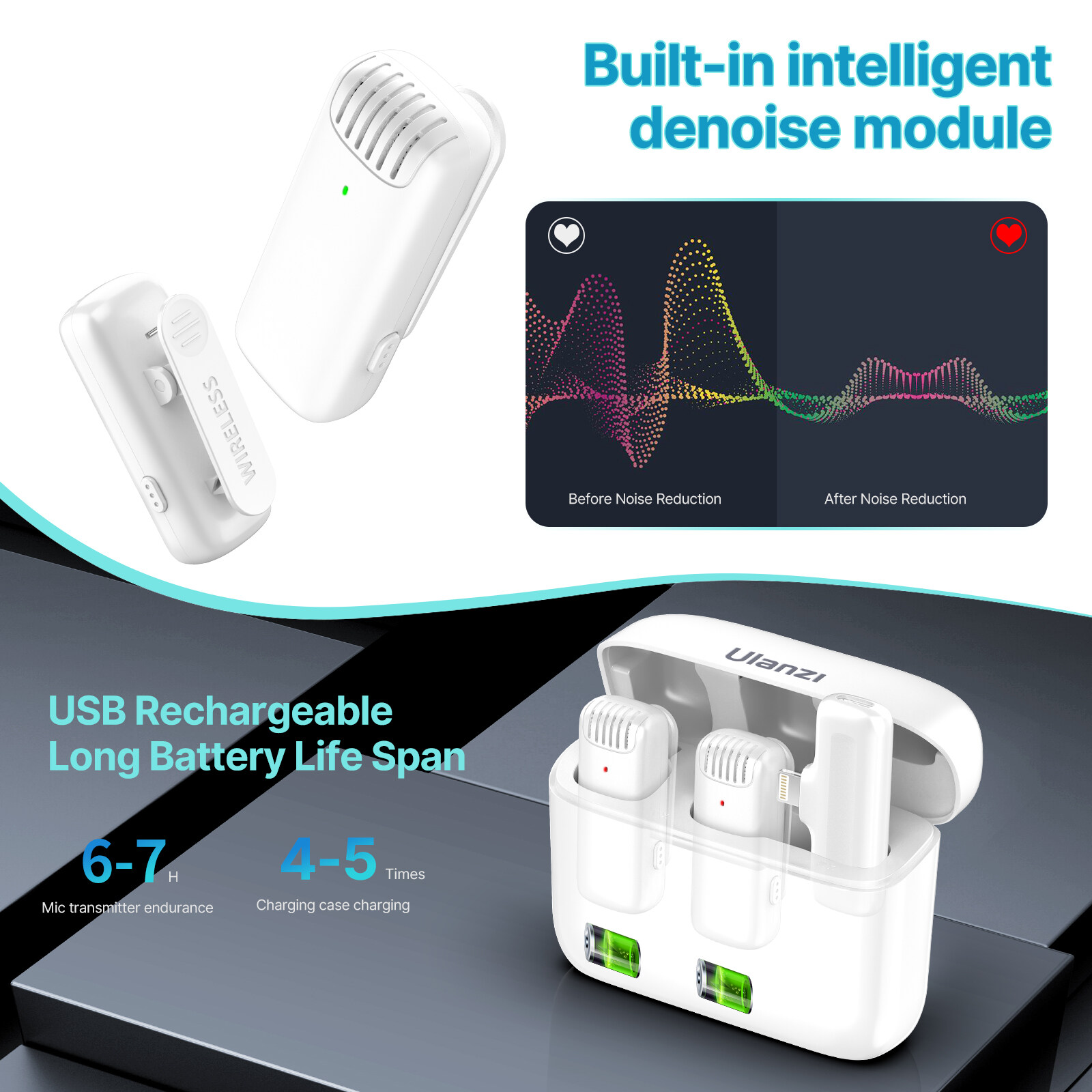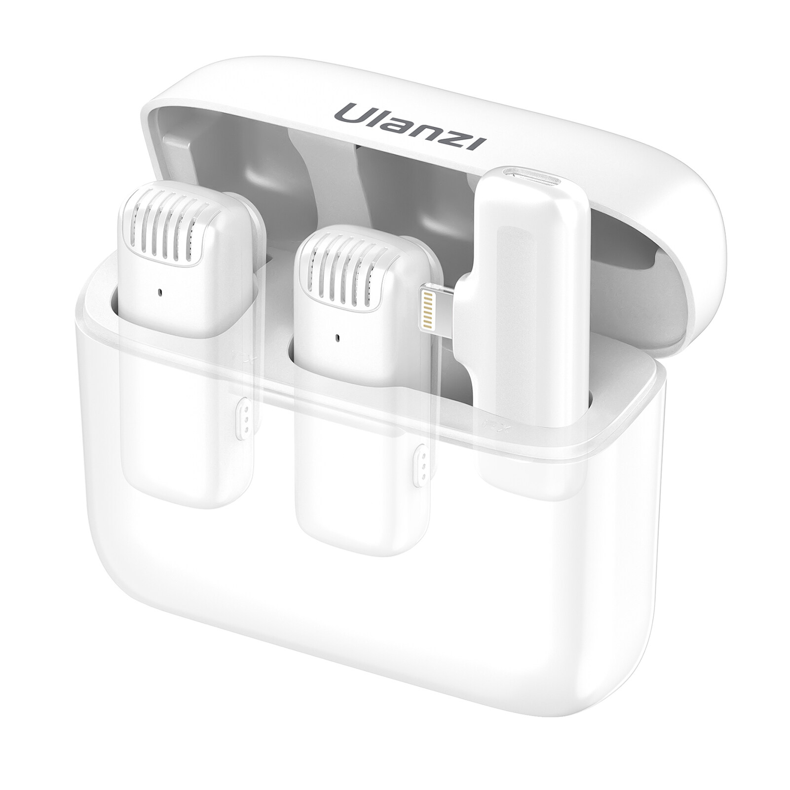 Ulanzi J12 Wireless Microphone System with 1 Receiver & 2 Microphones 20M Transmission Range Built-in Battery with Charging Case Replacement for iPhone 13/13 Pro/12/12 Pro/11/11 Pro/ 10 Live Streaming