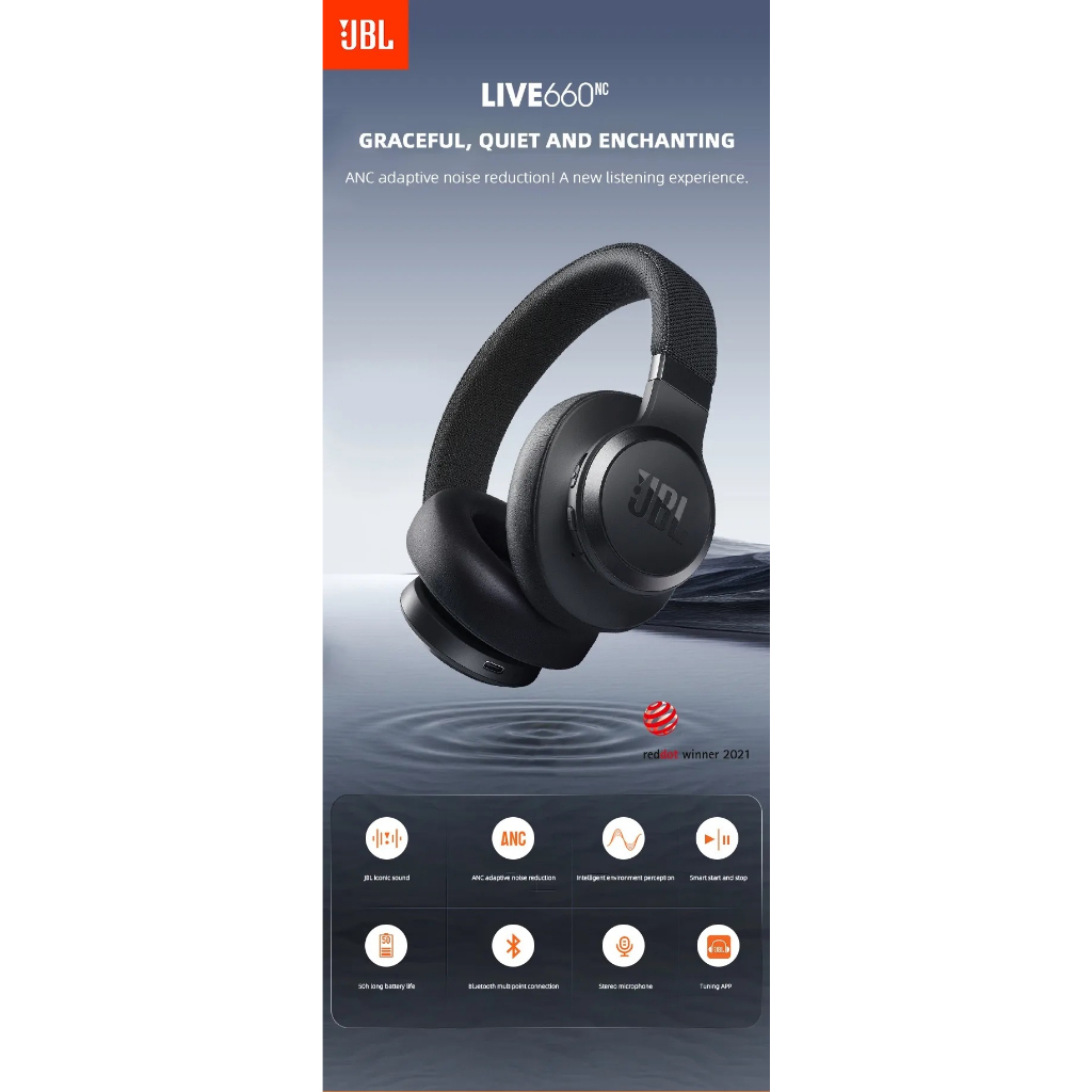 JBL Live 660NC Wireless Over-Ear Noise Cancelling Headphones with Long Lasting Battery and Voice Assistant