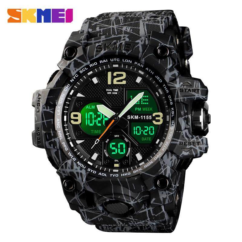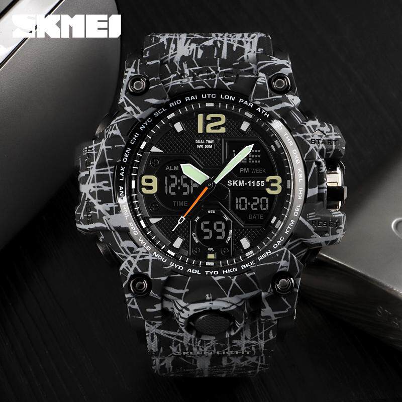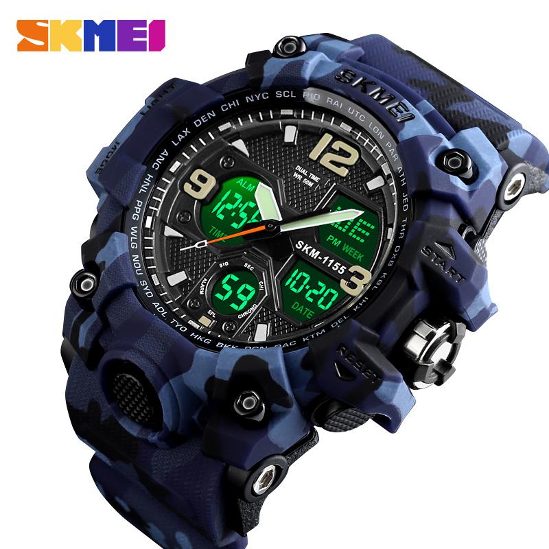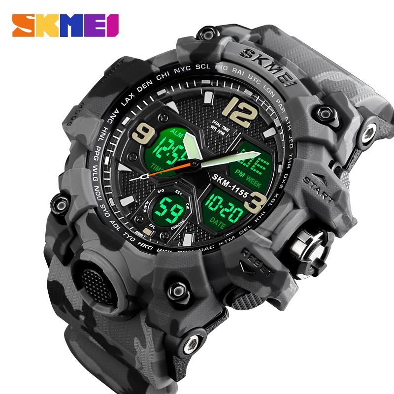 SKMEI New Men Sport Watches Digital Fashion Watch Chronograph Dual Display Alarm 50M Watwrproof EL Light Wristwatches 1155B
