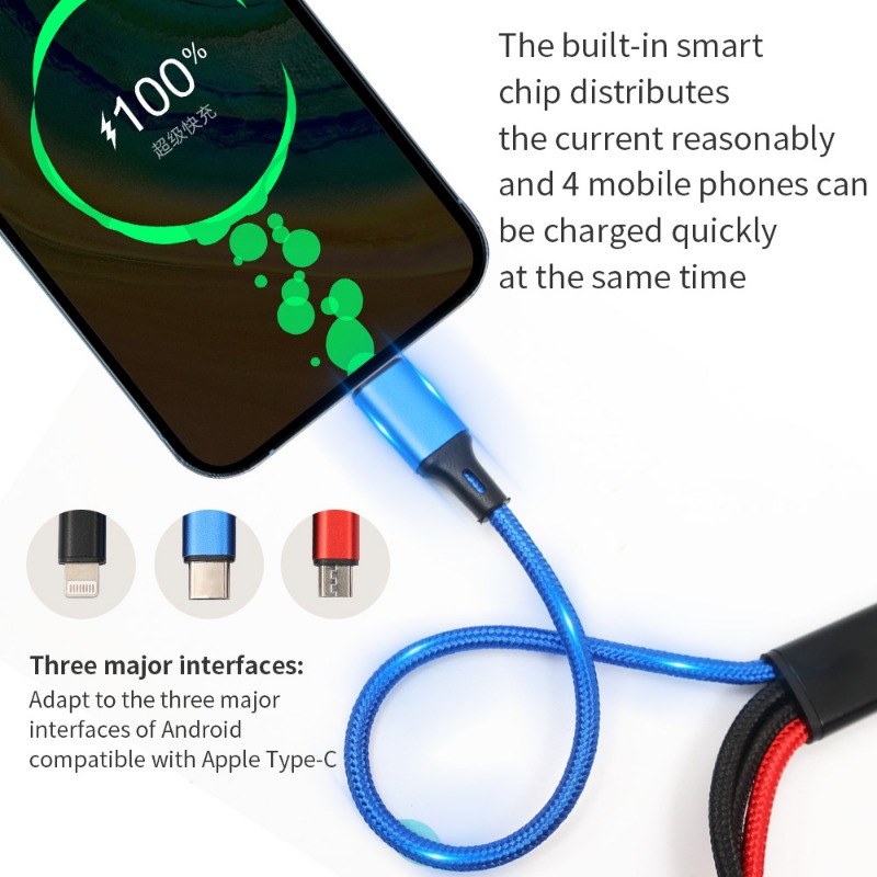 4 in1 Super Fast Charging Cable iPhone/Micro USB/Type C Data Cord for Huawei Samsung Xiaomi Quick Charge