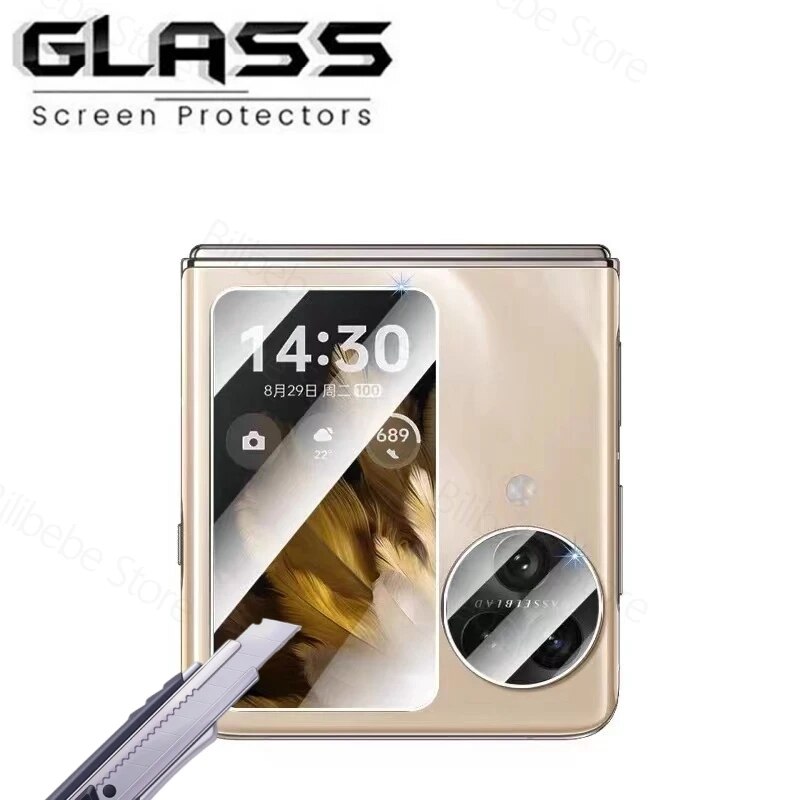 (2-in-1) Clear Screen Protector for Oppo Find N3 N2 Flip 5G Tempered Glass Film and Camera Lens Protector Anti-Scratch Waterproof (Front+Lens Film)