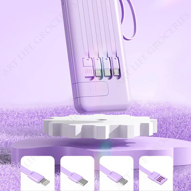 • ?With Built in 4 Cables: USB Charging Cable, Type-C Charging Cable, Lightning Cable, Micro USB Cable