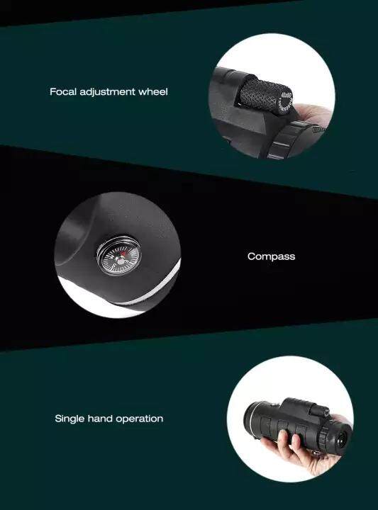 Portable and compact, this 40X60 outdoor monocular is the perfect tool for birds searching, concert watching, golfing, hunting, climbing, fishing, attending sports events or even just view enjoying!