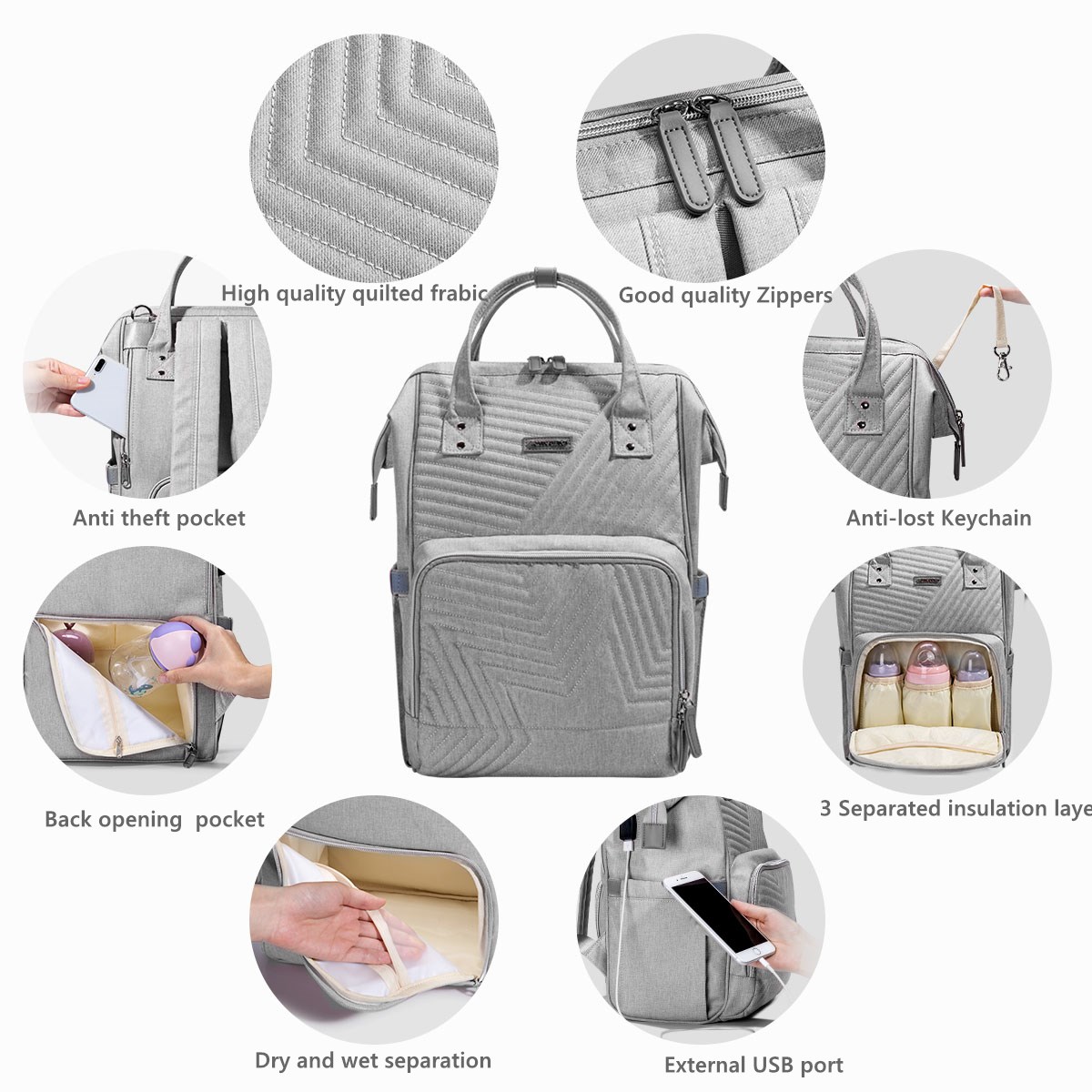 Tote around everything you need for babies, infants and toddlers with this baby diaper bag backpack that features 13 storage pockets and a USB port, complete with zippers for easy closure and three insulated pockets for bottles, snacks and more.