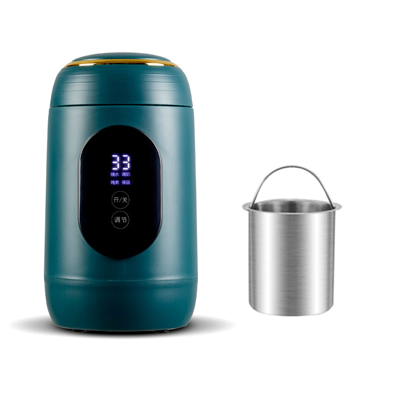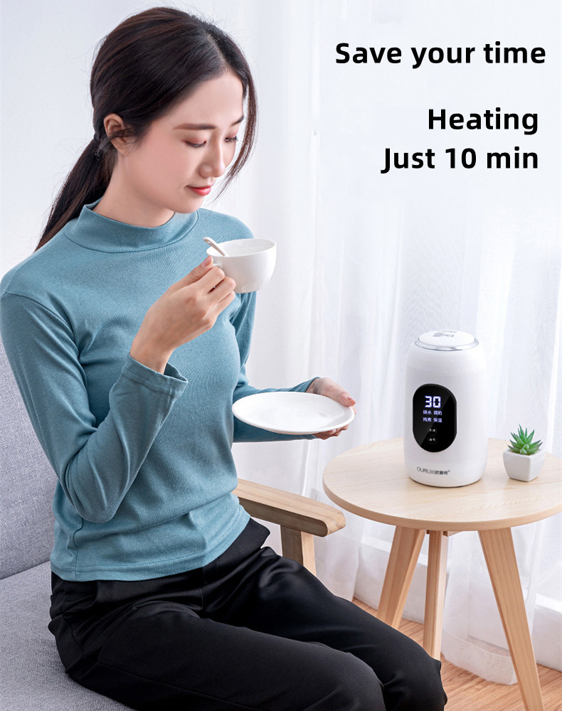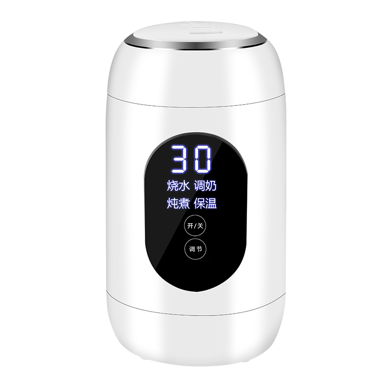 ﹏﹏﹏﹏﹏﹏﹏﹏﹏﹏﹏﹏﹏﹏﹏﹏﹏﹏﹏﹏﹏﹏﹏﹏﹏﹏﹏﹏﹏【A】※※Product Overview※※ 1.Small size, easy to carry; 2.The handle can be folded to save space. 3.Intelligent temperature control, Multi-function.﹏﹏﹏﹏﹏﹏﹏﹏﹏﹏﹏﹏﹏﹏﹏﹏﹏﹏﹏﹏﹏﹏﹏﹏﹏﹏﹏﹏﹏【B】※※Basic Product Parameters※※ 1.Model:DQ-V008; 2.volume: 0.7L; 3. Product size: about22cm*12cm; 4.Rated Voltage: 220 V; 5.Rated Power: 600 W; 6. Color: white; 7. Stew: with or without(Optional purchase) 8. Security authentication: CCC(China Compulsory Certification)﹏﹏﹏﹏﹏﹏﹏﹏﹏﹏﹏﹏﹏﹏﹏﹏﹏﹏﹏﹏﹏﹏﹏﹏﹏﹏﹏﹏﹏【C】※※Function and operation※※ ●Functional description: 1.Boiling water: heating to 100℃(display screen:00) → 60℃ holding for 12 hours → shutting down; 2.Milk mixing: 42℃ constant temperature for 24 hours → shutdown; 3.Stewing: heated to 100℃ (display screen:00) → converted to low power intermittent heating for 60 minutes→60℃ holding for 12 hours → shutting down; (Press the adjusting key to set the timing) 4.keep warm: 60℃ for 12 hours → shutdown; (Temperature can be set by pressing the adjusting key) ●Operational instructions: 1.Switch key: Used as boot-up and shutdown 2.Adjustment key: click on the function that needs to be used (boiling water, milk mixing, stewing, keep warm). After the function is selected, the program starts to work in 5 seconds. After the program is locked, if you need to re-select the function, you can press the switch key and re-select it. 3.Temperature Selection: After the start of the function program of stewing or keep warm, the manual temperature adjustment can be carried out by pressing the adjustment key; the temperature intelligent adjustment of the function of boiling water or milk-mixing.﹏﹏﹏﹏﹏﹏﹏﹏﹏﹏﹏﹏﹏﹏﹏﹏﹏﹏﹏﹏﹏﹏﹏﹏﹏﹏﹏﹏﹏【D】※※Other notes※※ 1.Origin: China; 2.Operation Style: touch; 3.Population recommended: Office workers students travelers; 4.Heating style: chassis heating; 5.Scale Label: inner wall label; 6.Material: stainless steel; 7.Whether have insulation function: YES; 8.Whether have Overheat protection: YES; ﹏﹏﹏﹏﹏﹏﹏﹏﹏﹏﹏﹏﹏﹏﹏﹏﹏﹏﹏﹏﹏﹏﹏﹏﹏﹏﹏﹏﹏【E】※※Reminder※※ 1.Steam at high temperature, hot hands carefully; 2. Please wipe with wet cloth, do not wash with water, in order to prevent leakage of electricity caused by water intake into the fuselage. 3. Free gift: Universal Malaysia Plug Socket Adaptor
