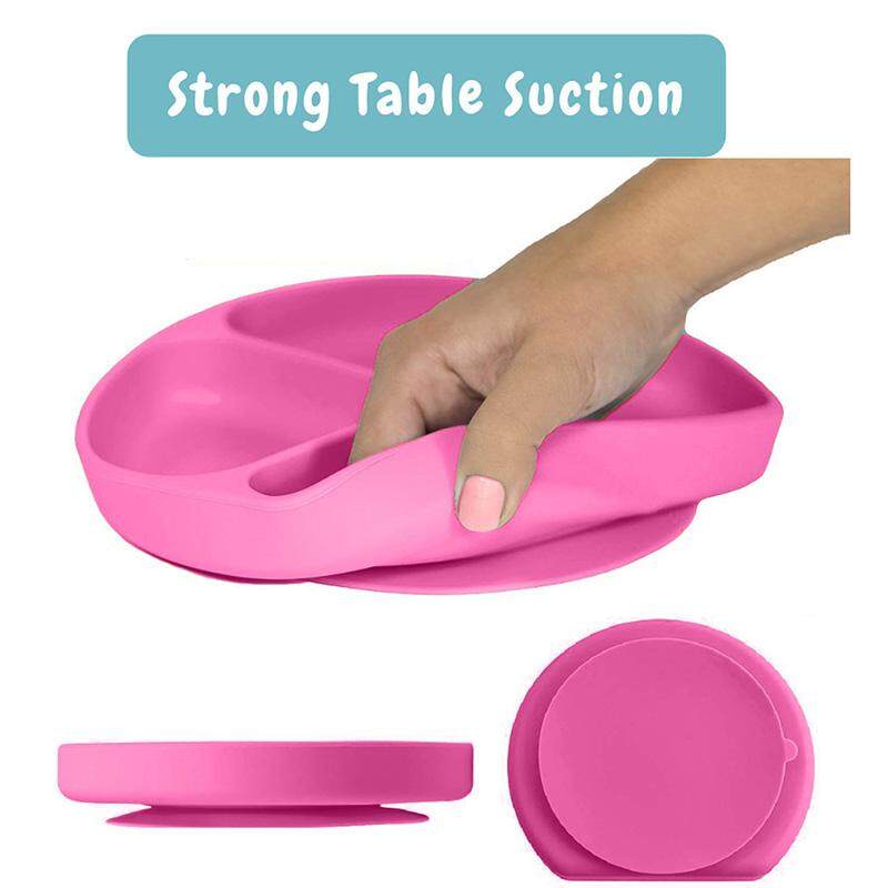 SZR Suction Plate And Bowl That Stick To highChair, Non Slip Silicone Feeding Placemat For Babies, Infant, Divided Baby Dishes, Perfect Kids Plates, Dishwasher, Microwave Safe