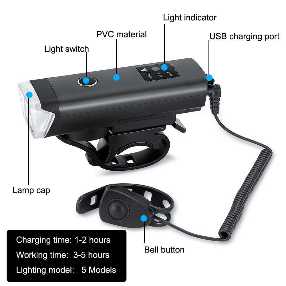 2. Bicycle light + bicycle horn 2 in 1 More comprehensive function, making the bicycle steering wheel more compact