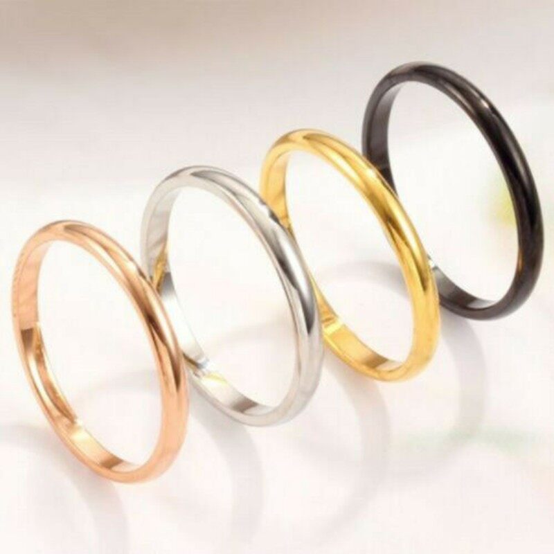 2Pcs Thin 2mm Stackable Ring Stainless Steel Plain Band for Women Girl Size 4-9