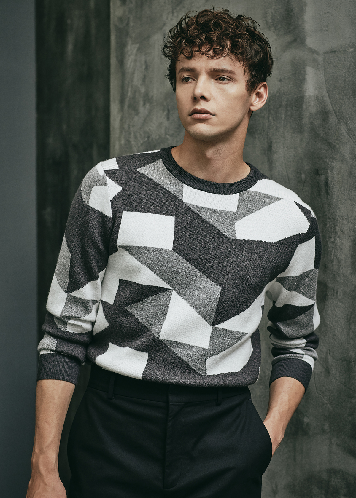 CREW NECK KNITTED SWEATER WITH PATTERN