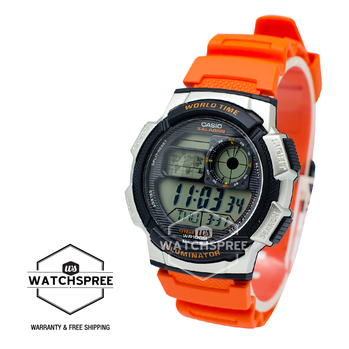[Watchspree] Casio Men's Standard Digital Orange Resin Band Watch AE1000W-4B AE-1000W-4B