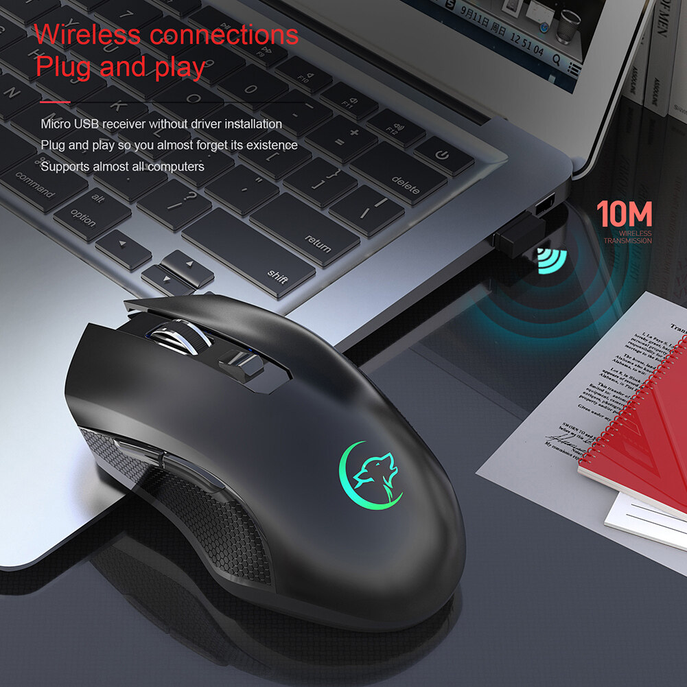 G851 Wireless Mouse 2.4GHz Receiver 2400DPI Rechargeable Colorful Mute Office Gaming Mice for Laptop Desktop PC Computer Compatible with Mac OS Windows