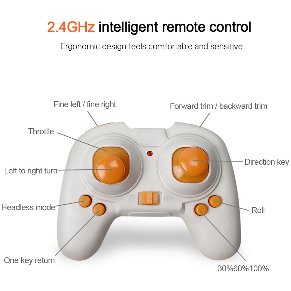 Function: up/down, left/right rotation, forward/backward, left/right lateral flight, headless mode, one-button return, barometer setting height, etc.