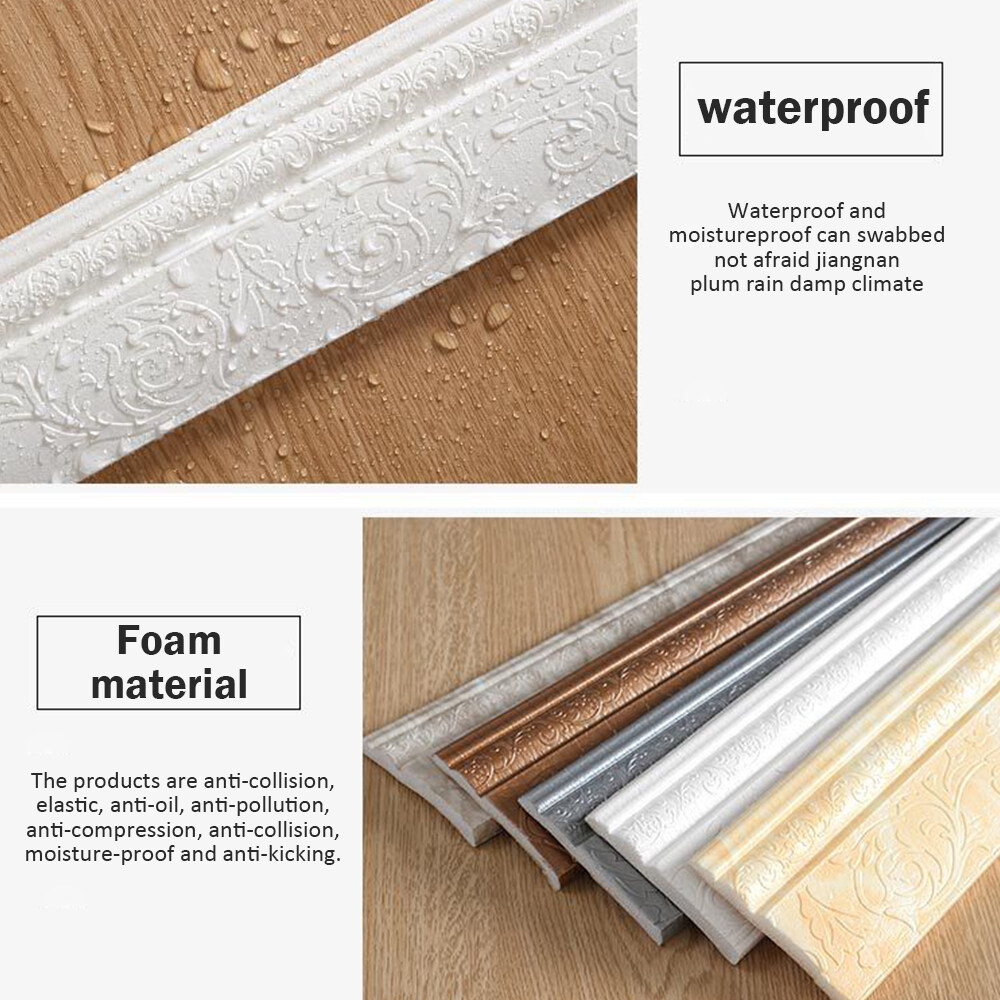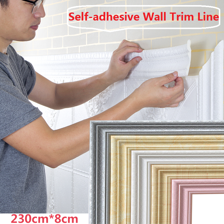 [YESPERY] Wall Trim Line 3D Border Wall Sticker Waterproof Top Corner Line Wall Edge Strip Wall Waist Line Sticker Tiles Wallpaper Border Home Wall Decor 230cm