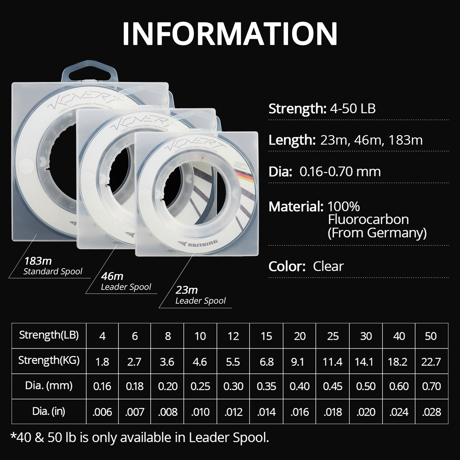 KastKing Kovert Fluorocarbon Fishing Line 46m 183m 4-50LB 0.16-0.7mm 100% Carbon Sinking Fishing Line Strong Full Fluorocarbon Leader Line German Material