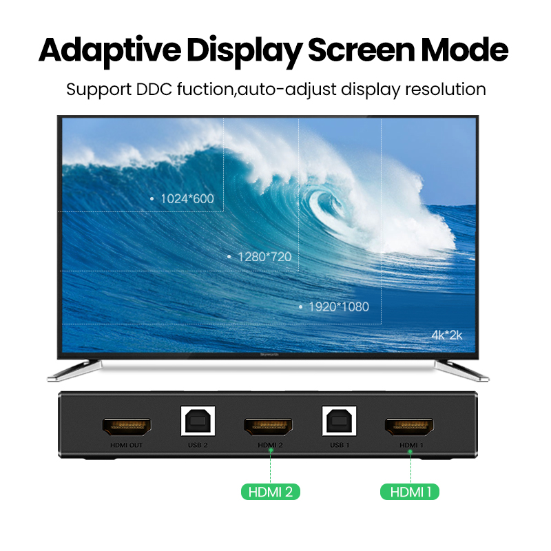 UGREEN USB HDMI KVM Switch 4K 60Hz Ultra HD 2 IN 1 HDMI Switcher Box and VGA to USB KVM Splitter for Sharing Monitor Printer Keyboard Mouse