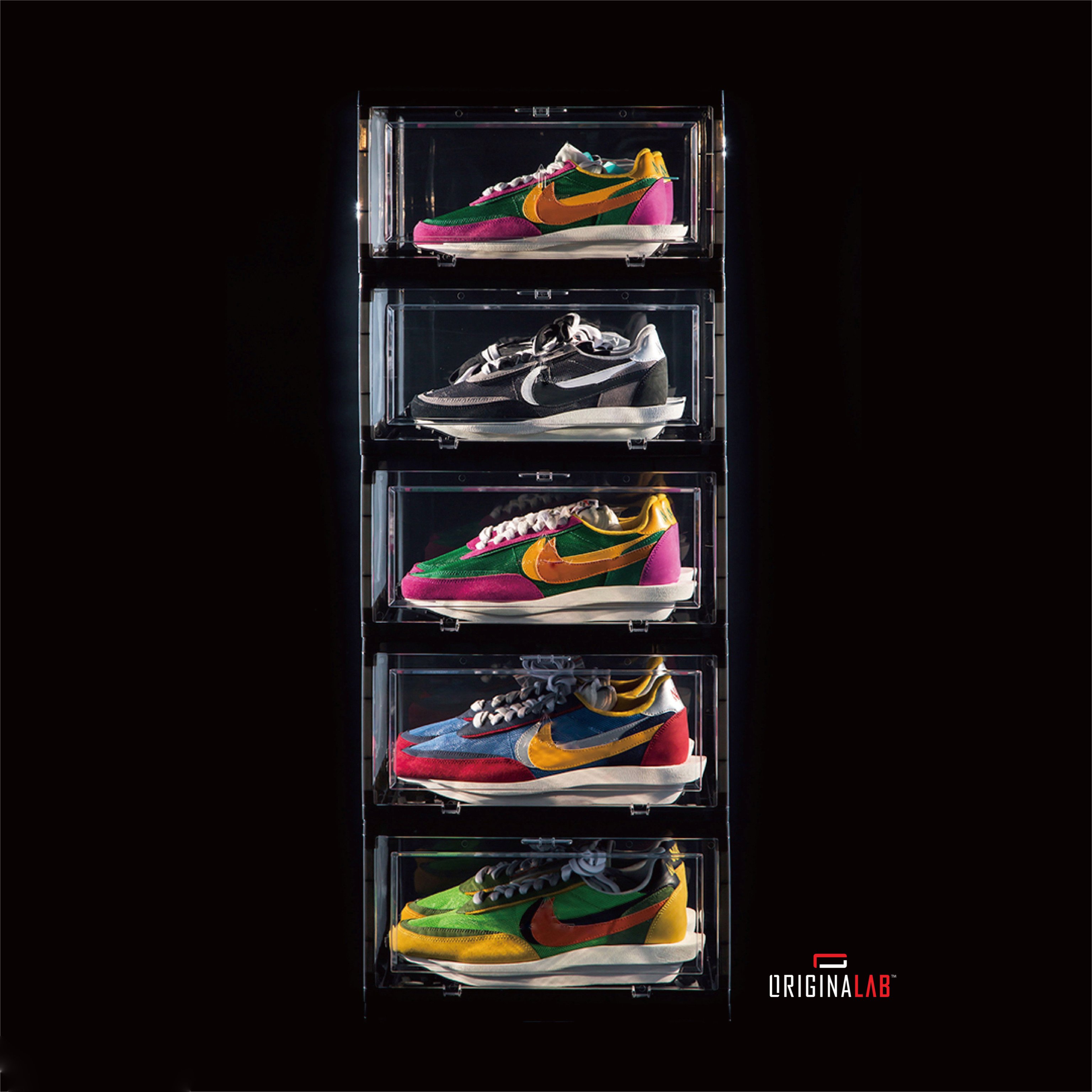 The magnetic door is made of High Clarity PS Polystyrene (Abrasion Resistant), allowing for a clear view of the displayed product. Only available in ORIGINALAB Premium Shoe Box.