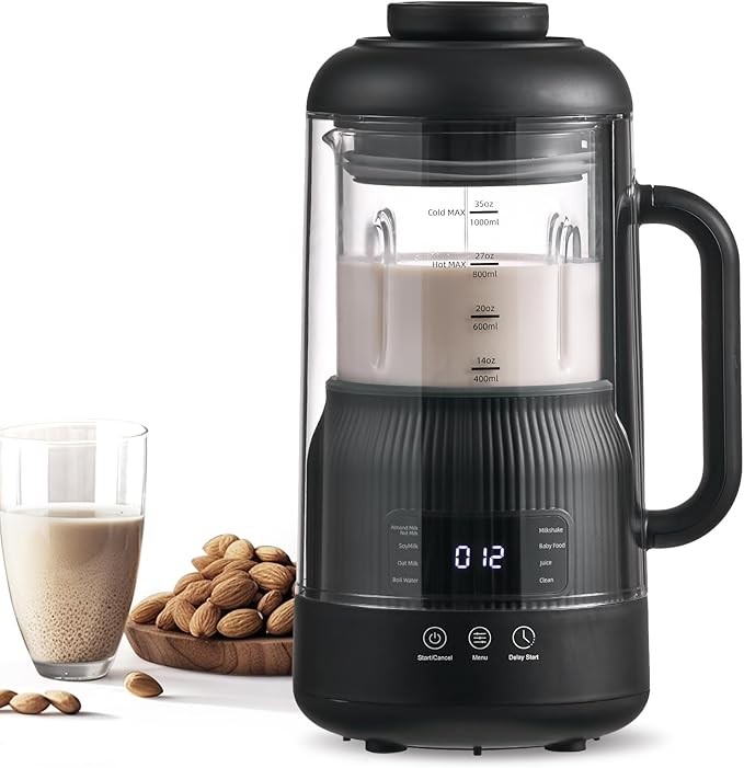 8 in 1 Automatic Nut Milk Maker Blender, 35oz Soymilk Machine for Homemade Almond, Oat,Plant-Based Milk, 12 Hours Timer/Auto-clean/Low-Noise With Quiet Shield/Keep Warm