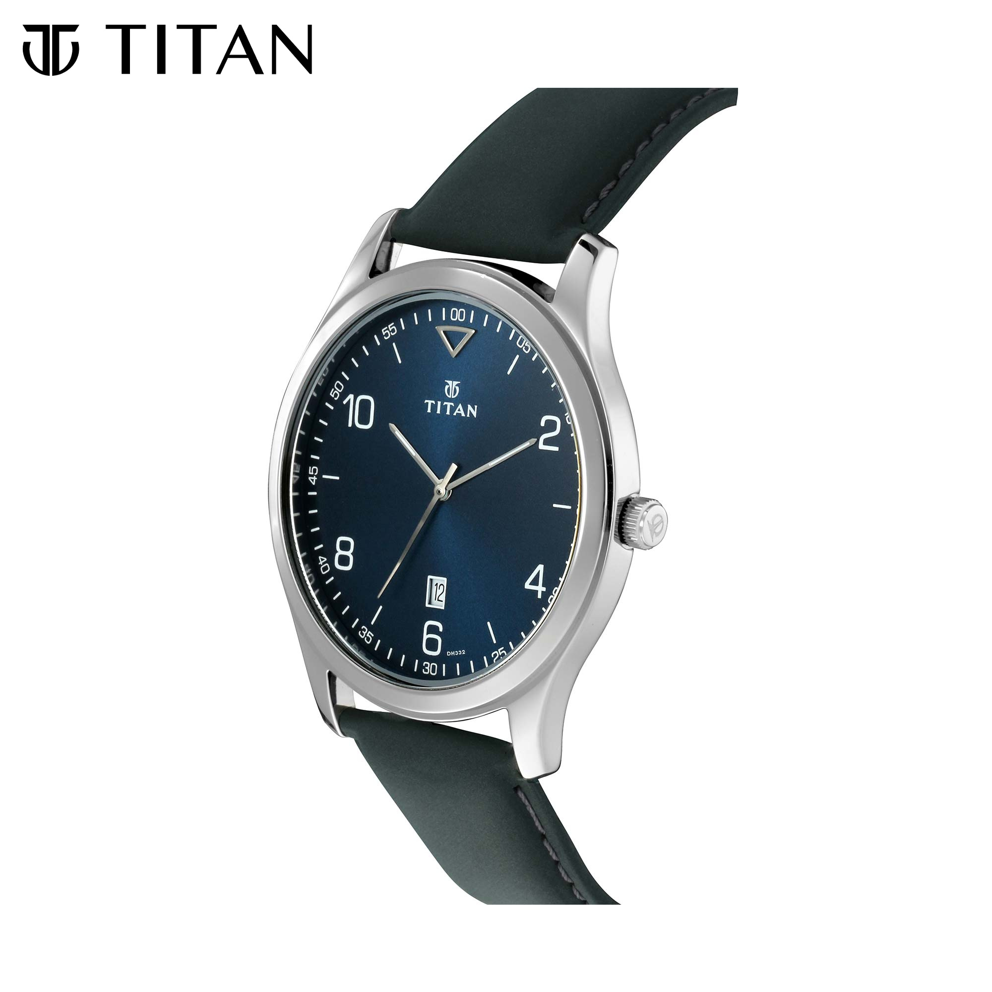Titan Workwear Men's Watch with Blue Dial & Leather Strap 1770SL03