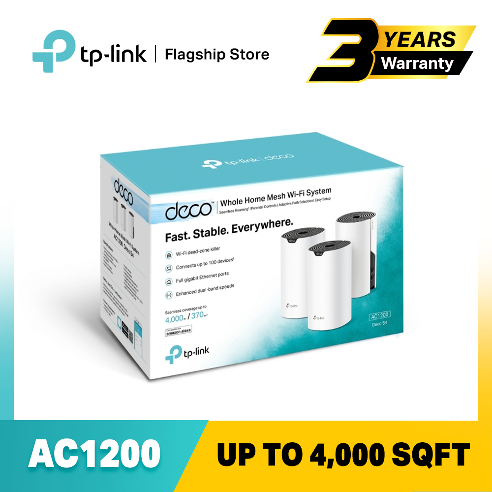 TP-LINK Deco S4(3-pack) AC1200 Dual Band Gigabit MU-MIMO WiFi Mesh Router (Whole Home Mesh WiFi System) Works with all Telcos (Supports IPTV)