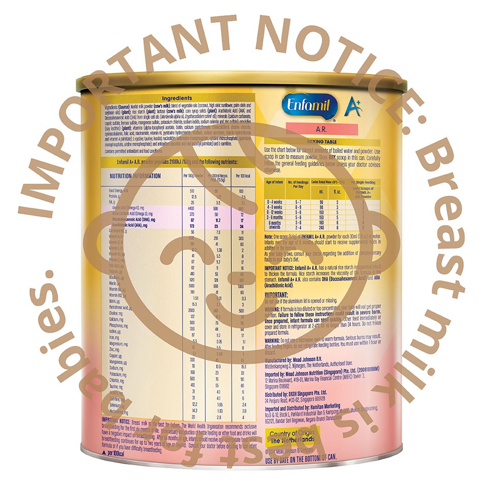 Enfamil A+ Stage 1 A.R. Infant Formula Baby Milk Powder 360DHA+ (0-12M) 900g