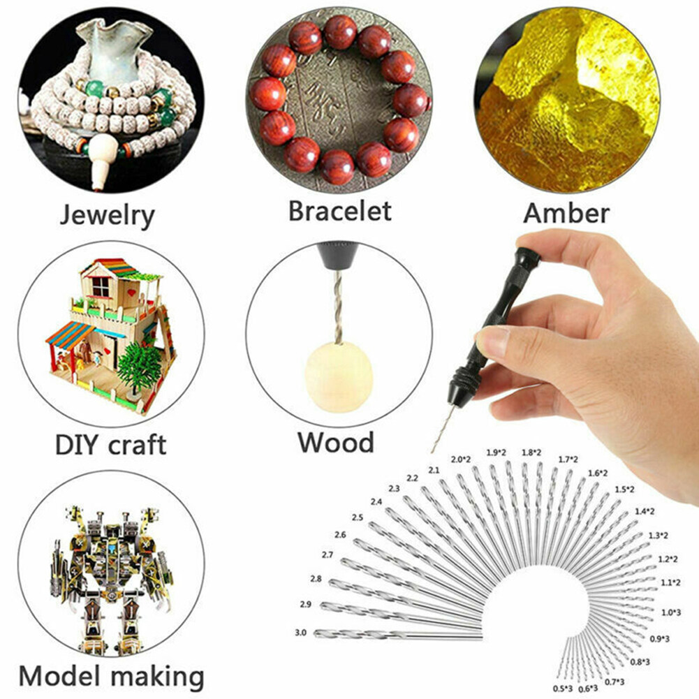 *Size: 1 mini pin vise. 48 drill bits 0.5 / 0.6 / 0.7 / 0.8 / 0.9 / 1.0mm (3 sizes each); 1.1 / 1.2 / 1.3 / 1.4 / 1.5 / 1.6 / 1.7 / 1.8 / 1.9 / 2.0mm (2 sizes each) ); 2.1 / 2.2 / 2.3 / 2.4 / 2.5 / 2.6 / 2.7 / 2.8 / 2.9 / 3.0mm (1 for each size). A full-sized pin and sub-drill kit to meet your different needs.