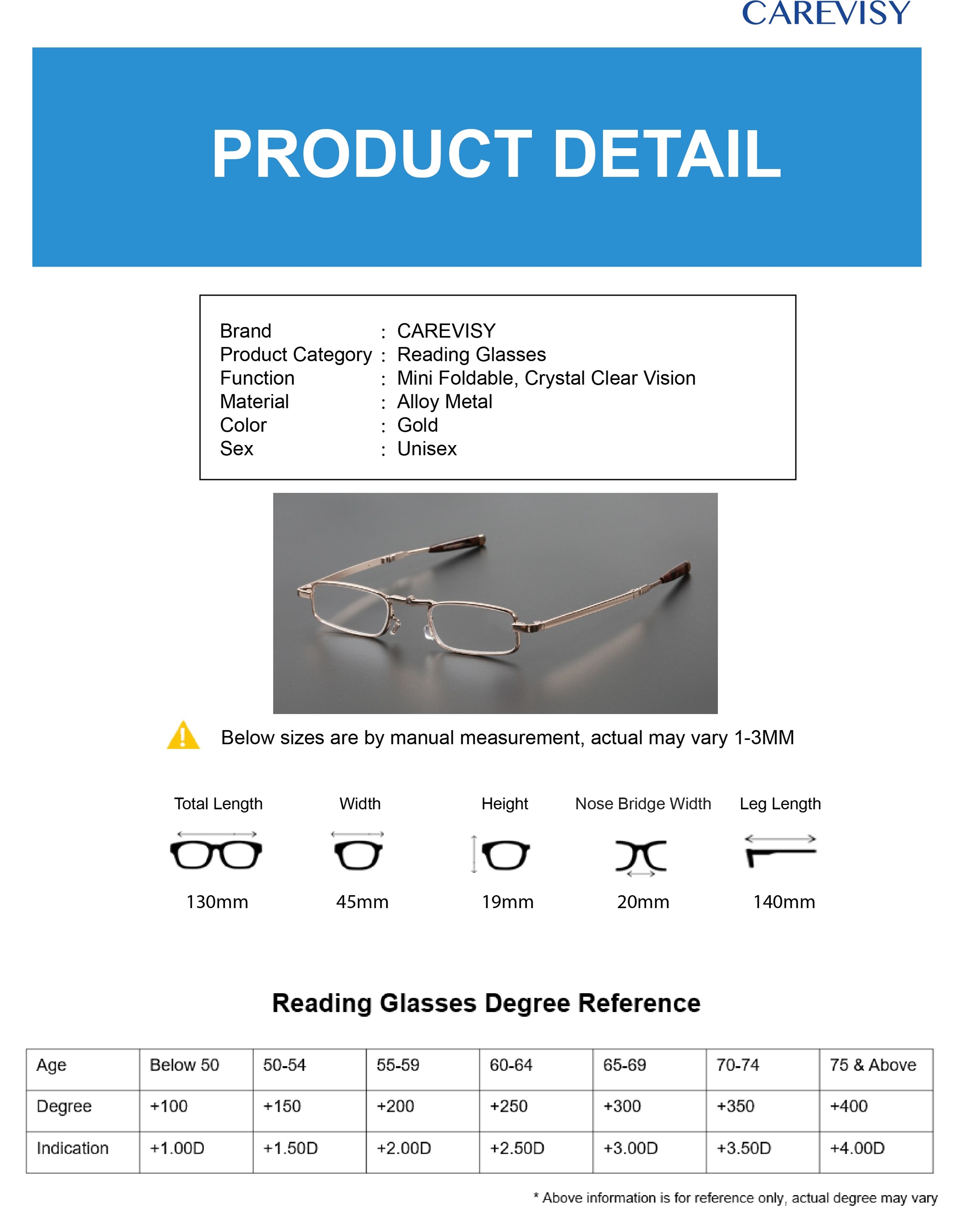 (Gift for parents) CAREVISY Mini Foldable High Degree Reading Glasses Presbyopic Presbyopia Glasses Lao Hua Glasses Spectacles for Adults Women C6017