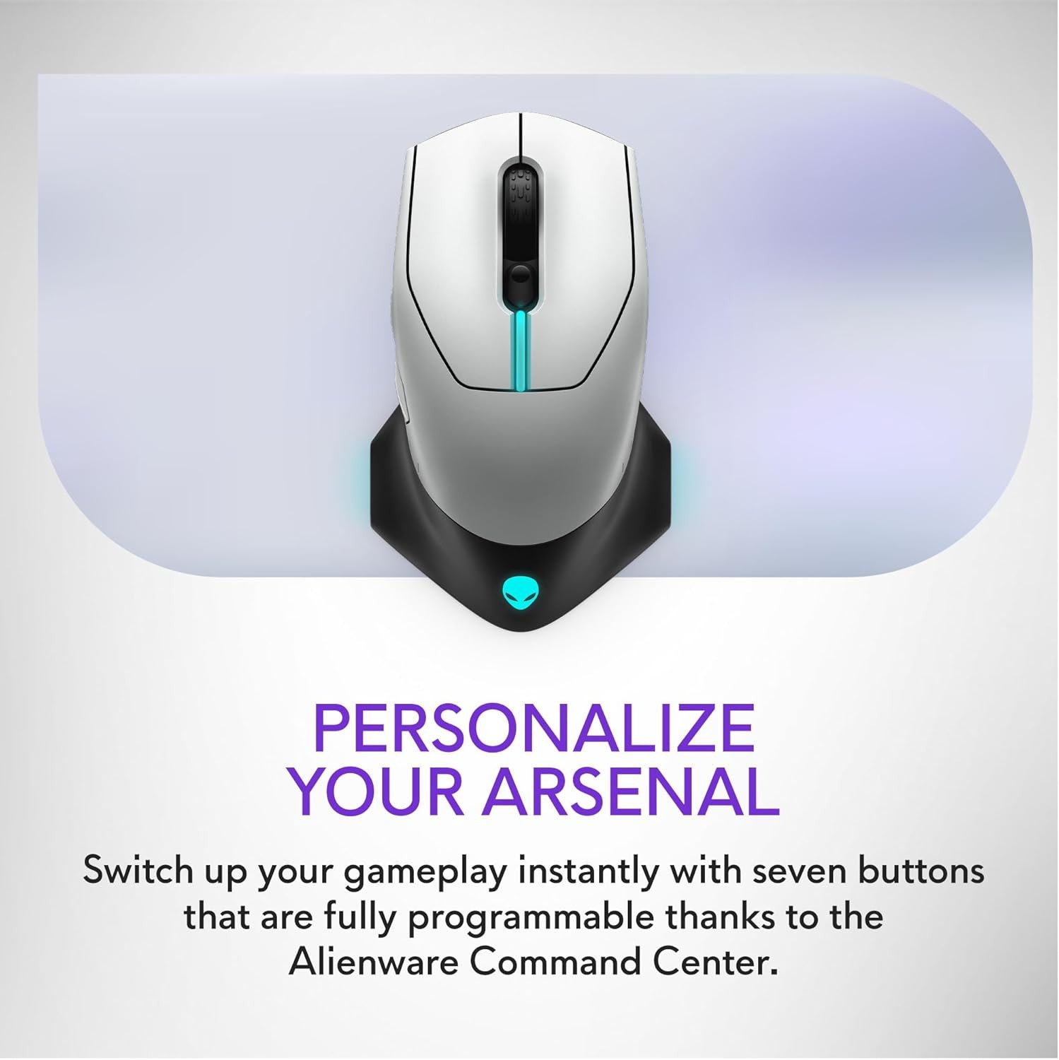 Alienware Wired/Wireless Gaming Mouse AW610M - 16000 DPI, Optical Sensor, Ambidextrous, 7 Buttons, 3-ZONE 16.8m AlienFX RGB Lighting, Edge-Free Design, Ergonomic - Lunar Light