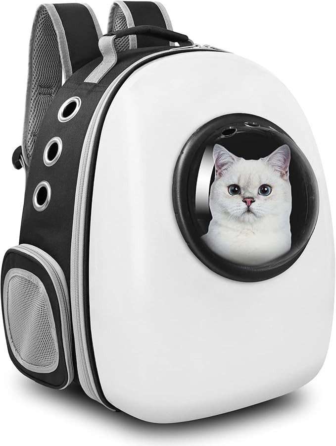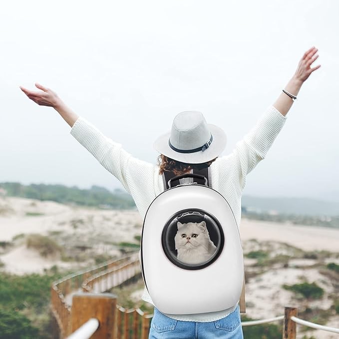 Henkelion Cat Backpack Carrier Bubble Bag, Space Capsule Shell Dog Backpack Carrier for Small Pets Dogs, Pet Carrier Dog Backpack Airline Approved Travel Carrier - White