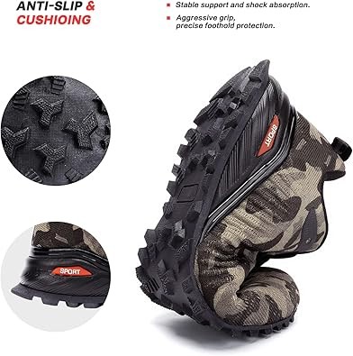 VERY FASHIONABLE: The outdoor walking shoes include camouflage, black and red colors, which makes this trail running shoe more attractive. The men's camouflage fashion sneakers are a great choice for many outdoor enthusiasts.