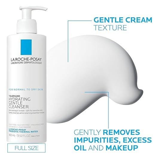 La Roche-Posay Toleriane Hydrating Gentle Face Cleanser | Hydrating Facial Cleanser With Niacinamide + Ceramides | Daily Face Wash For Dry Skin To Normal Skin | Sensitive Skin Tested | Fragrance Free