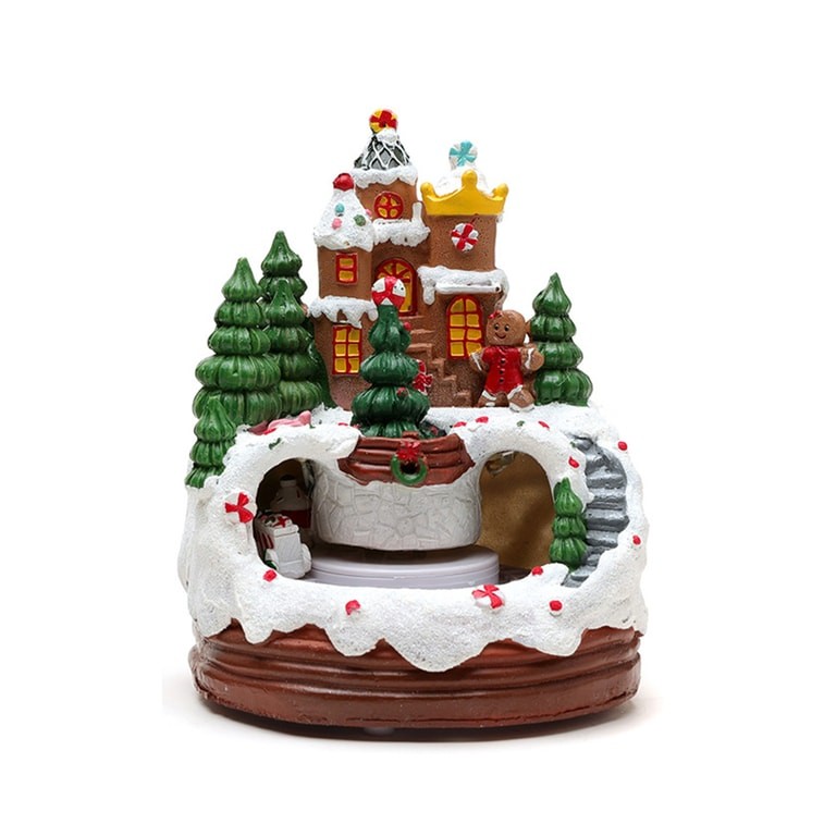 New Resin Biscuit Man Rotating Train Music Ornament Christmas Gift 1 Piece Three Roof Models F