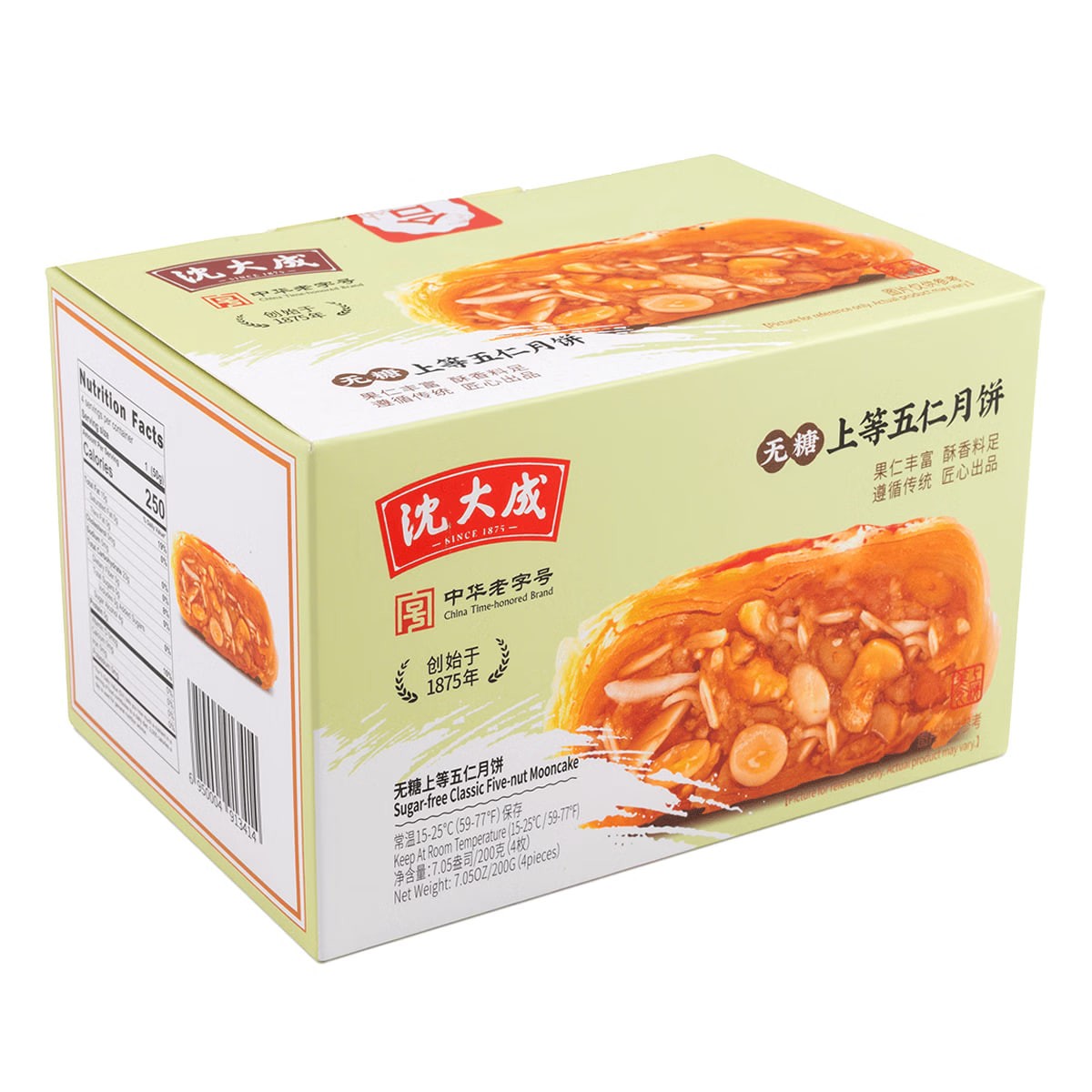 Shen Dacheng (Shanghai Time-Honored Brand) Su-Style Five-Nut Multi-Flavor Mooncakes, Sugar-Free, Fine Sand Shortbread, a Mid-Autumn Festival Shanghai Specialty, 4 pieces, 200g. Suitable for those with diabetes.