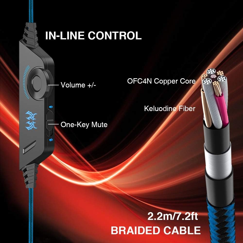 【IMMERSIVE GAMING EXPERIENCE】 Stunning LED lights designed on earcups quickly blasts the atmosphere of your game. High precision 50mm magnetic neodymium driver provides you vivid sound field, high quality stereo sound for game playing.