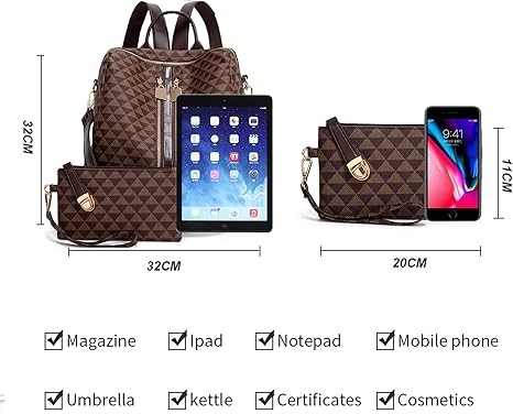 Women's Backpack Wallet PU Leather Travel Satchel Handbag Convertible Design Bag with Wallet, Brown, Travel Backpack